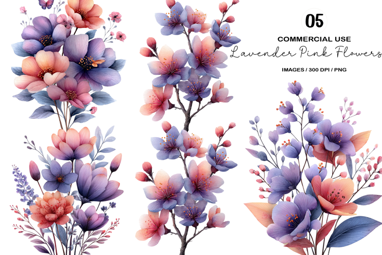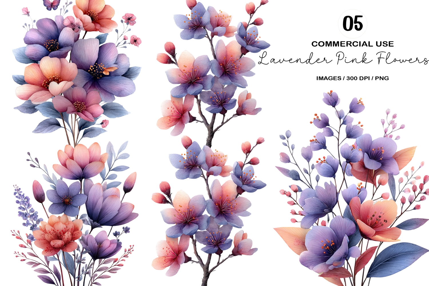 Similar Design Products to Whimsical Lavender Pink Flowers Clipart