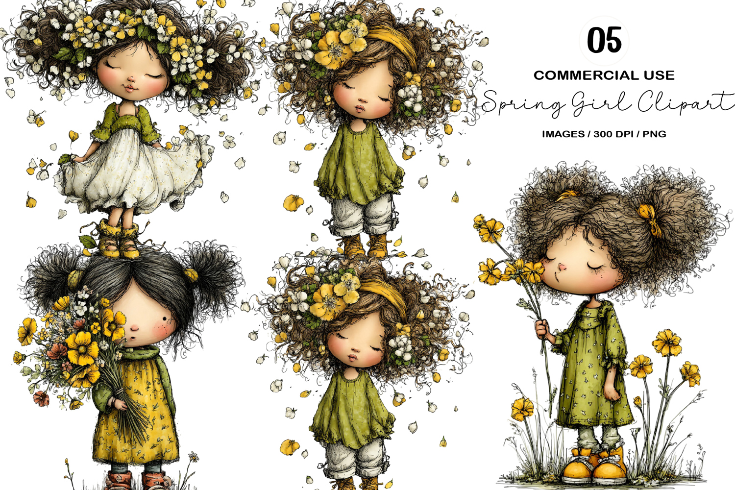 Whimsical Spring Girl Clipart