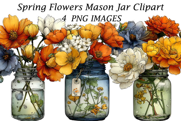 Similar Design Products to Spring Flowers Mason Jar Clipart