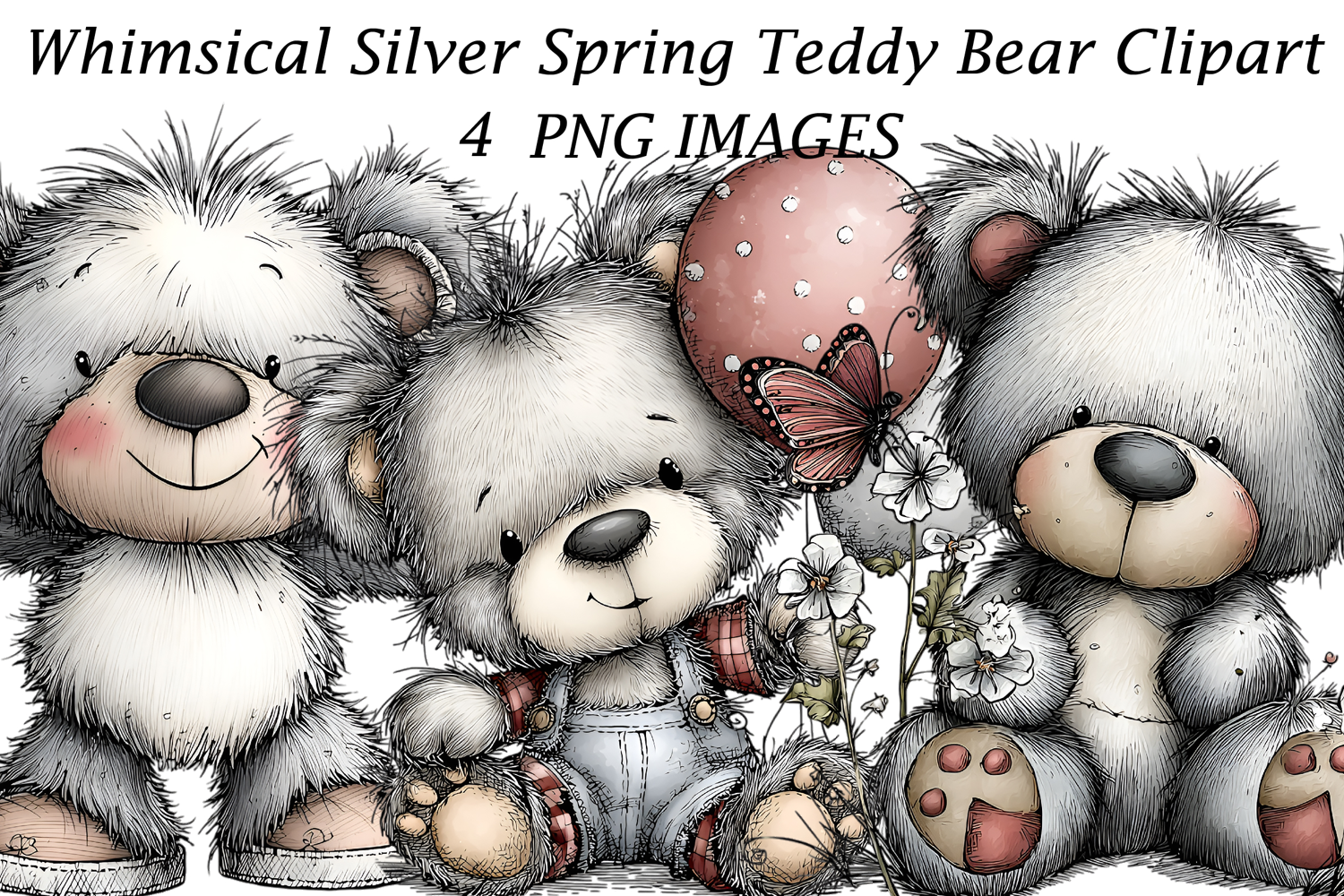 Whimsical Silver Spring Teddy Bear Clipart example image 1