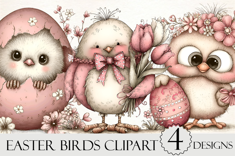Whimsical Easter Birds Clipart