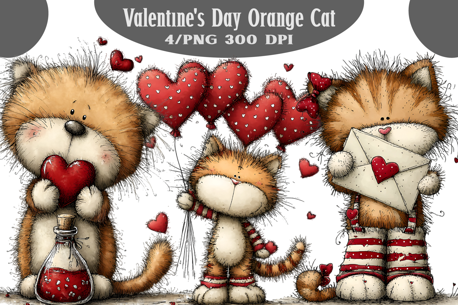 Valentine's Day Orange Cat Clipart PNG example image 1