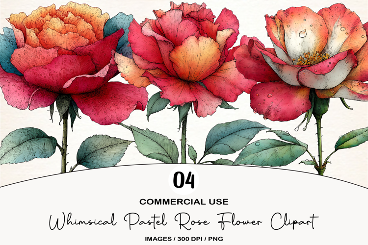Similar Design Products to Whimsical Pastel Rose Flower Clipart