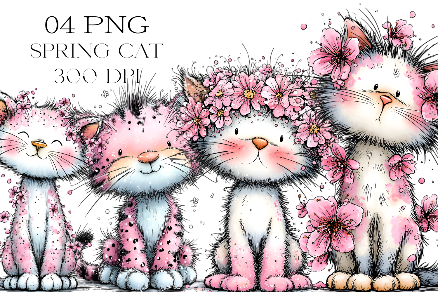 Whimsical Spring Cat Clipart example image 1
