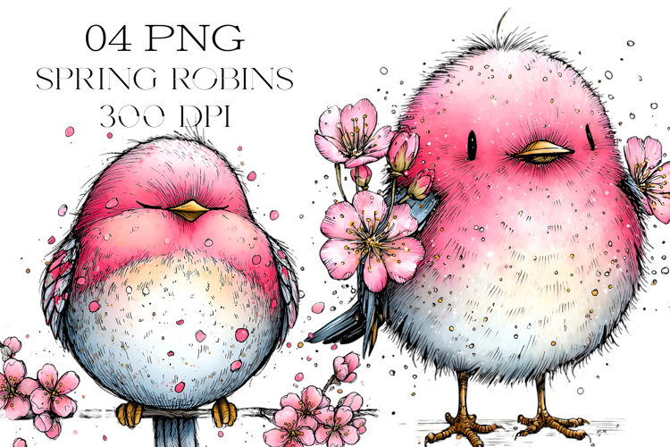 Whimsical Spring Robins Clipart