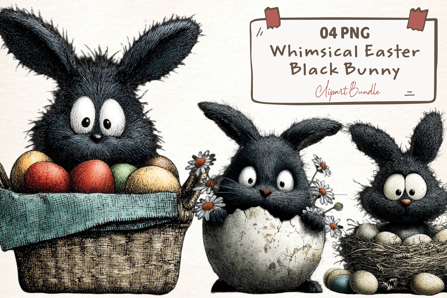 Similar Design Products to Whimsical Easter Black Bunny Clipart