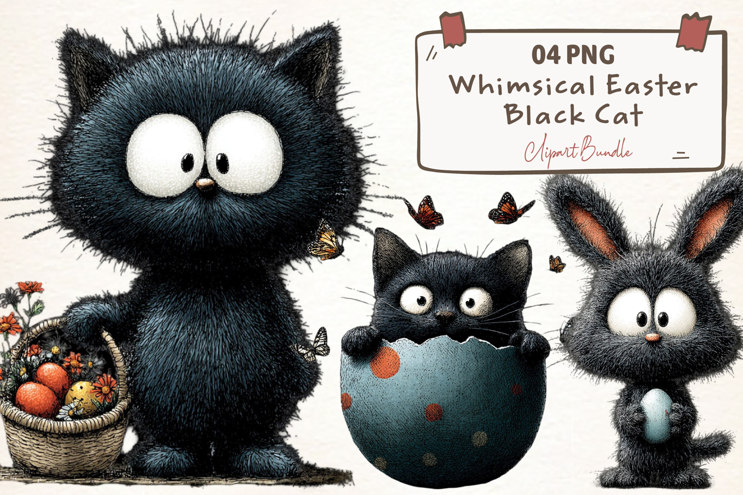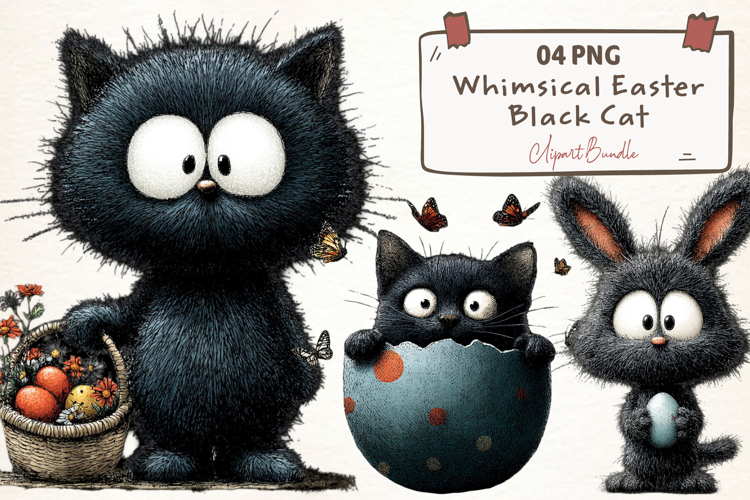 Similar Design Products to Whimsical Easter Black Cat Clipart