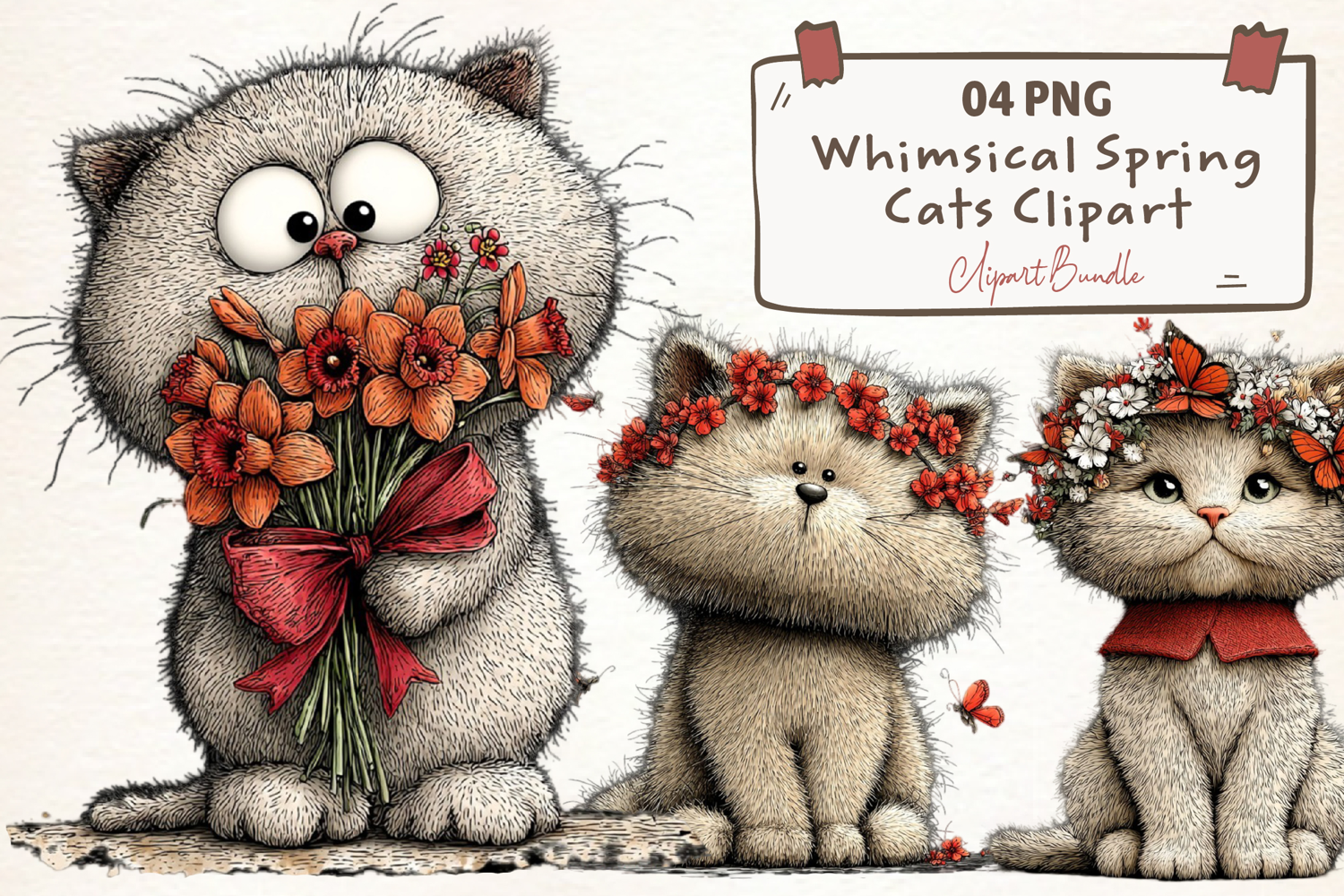 Whimsical Spring Cats Clipart