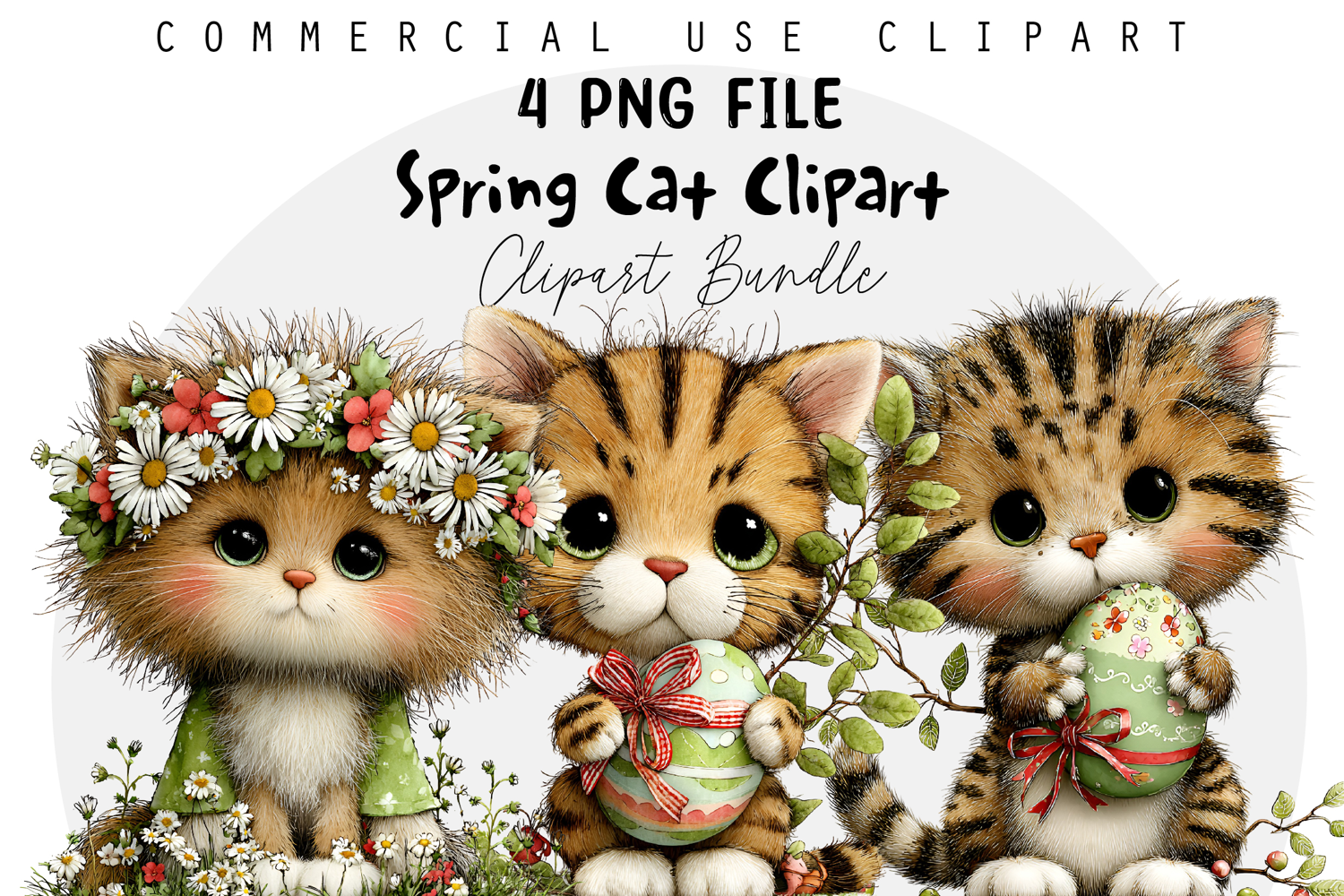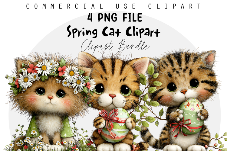 Whimsical Spring Cat Clipart example image 1