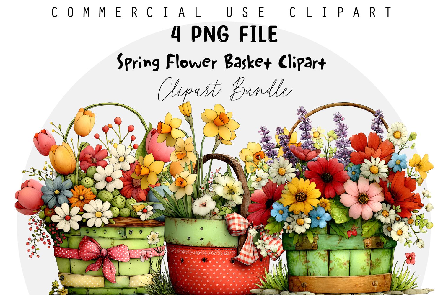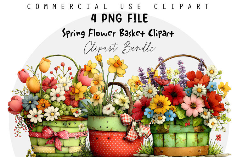 Whimsical Spring Flower Basket Clipart example image 1