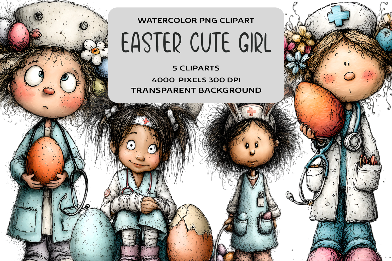 Whimsical Easter Girl Clipart