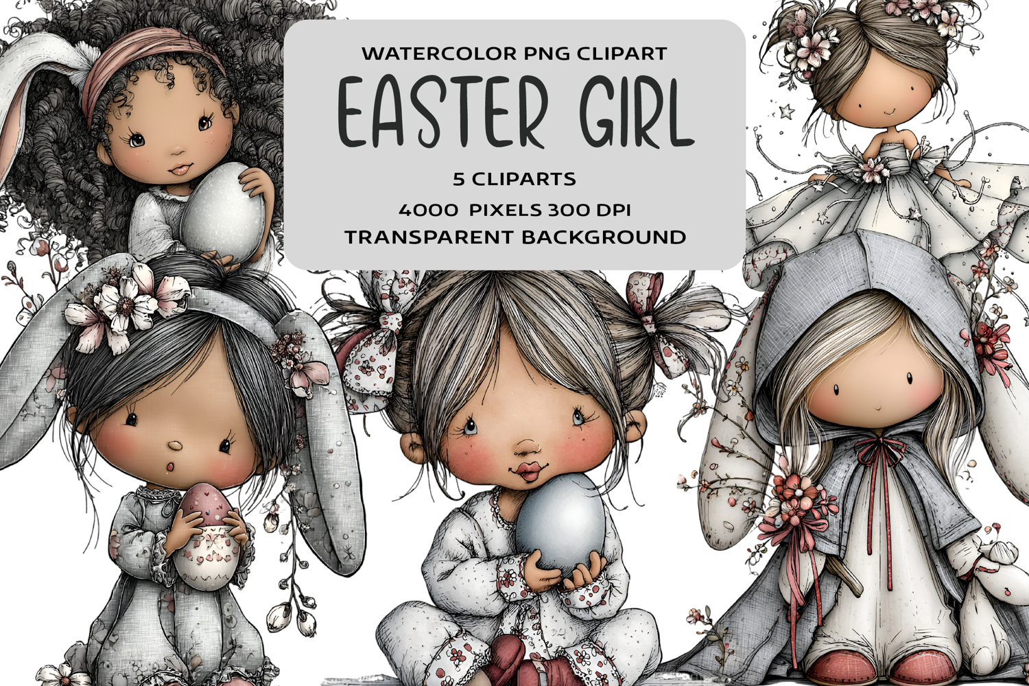 Similar Design Products to Whimsical Easter Silver Girl Clipart