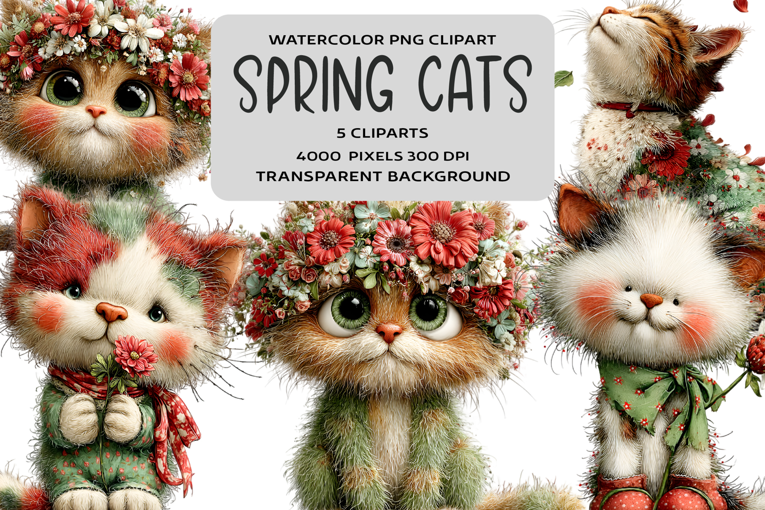Whimsical Spring Cats Clipart