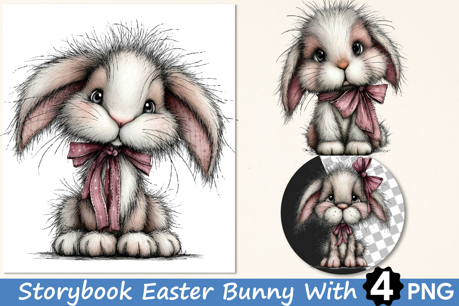 Sticker Digital Download T-shirt Design Bunny Sublimation Whimsical Easter Easter Sublimation Clipart Whimsical Spring Clipart Whimsical Easter Png Whimsical Spring Sublimation Storybook Easter Bunny With Bow Clipart