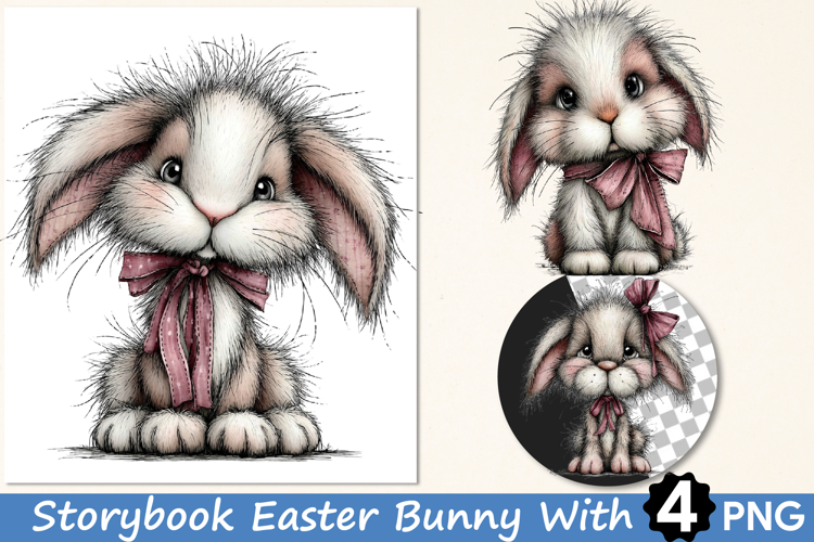 Storybook Easter Bunny With Bow Clipart example image 1