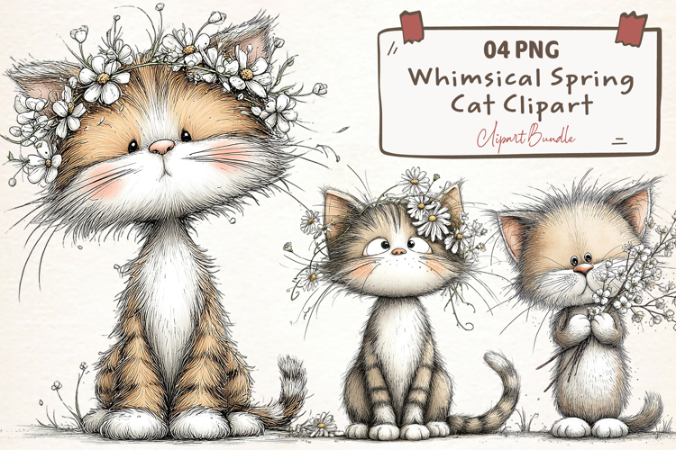 Similar Design Products to Whimsical Spring Cat Clipart Png