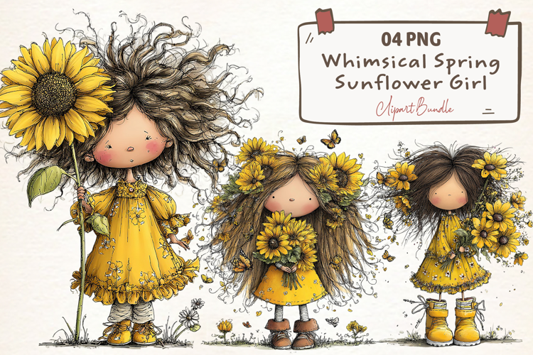 Similar Design Products to Whimsical Spring Sunflower Girl Clipart
