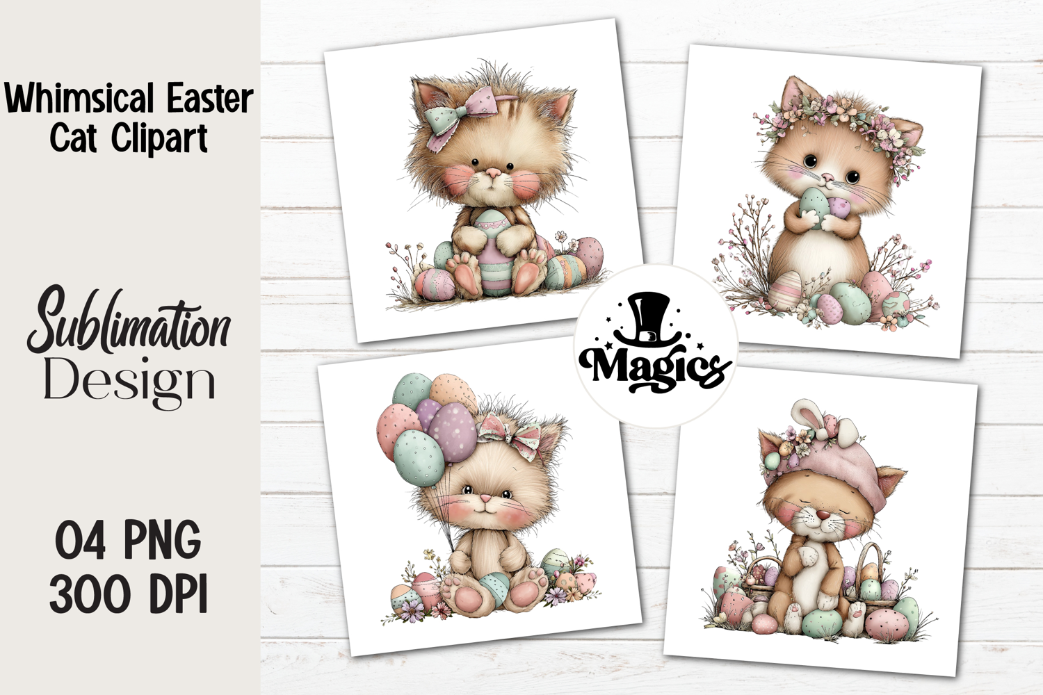 Similar Design Products to Whimsical Easter Cat Clipart, Easter Sublimation PNG