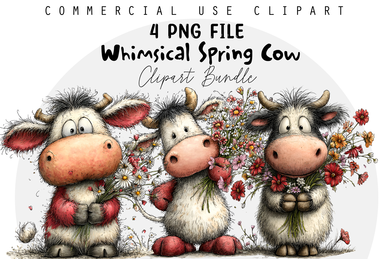 Whimsical Spring Cow Clipart, Easter Sublimation PNG