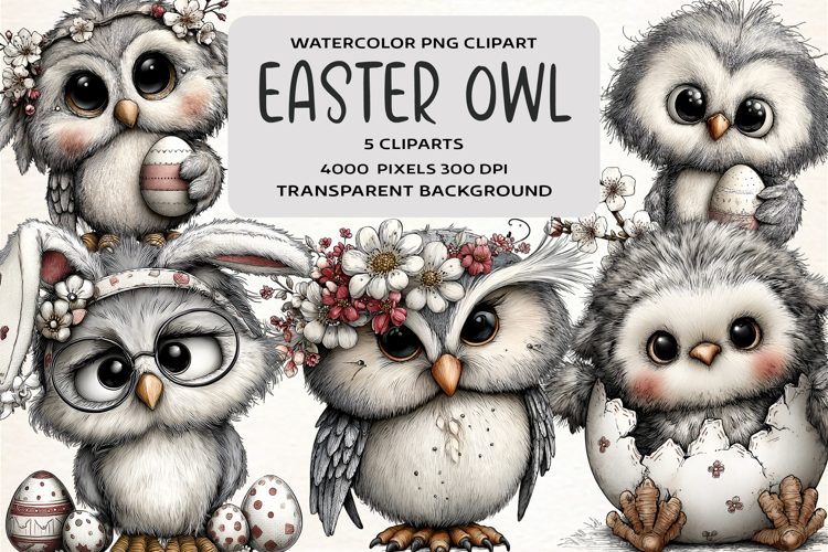 Similar Design Products to Whimsical Easter Owl Clipart