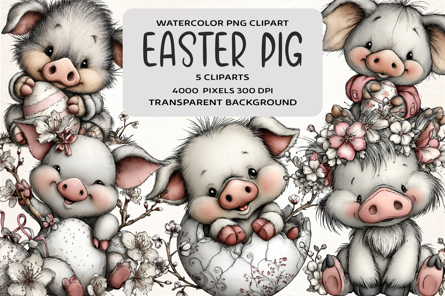 Whimsical Easter Pig Clipart example image 1