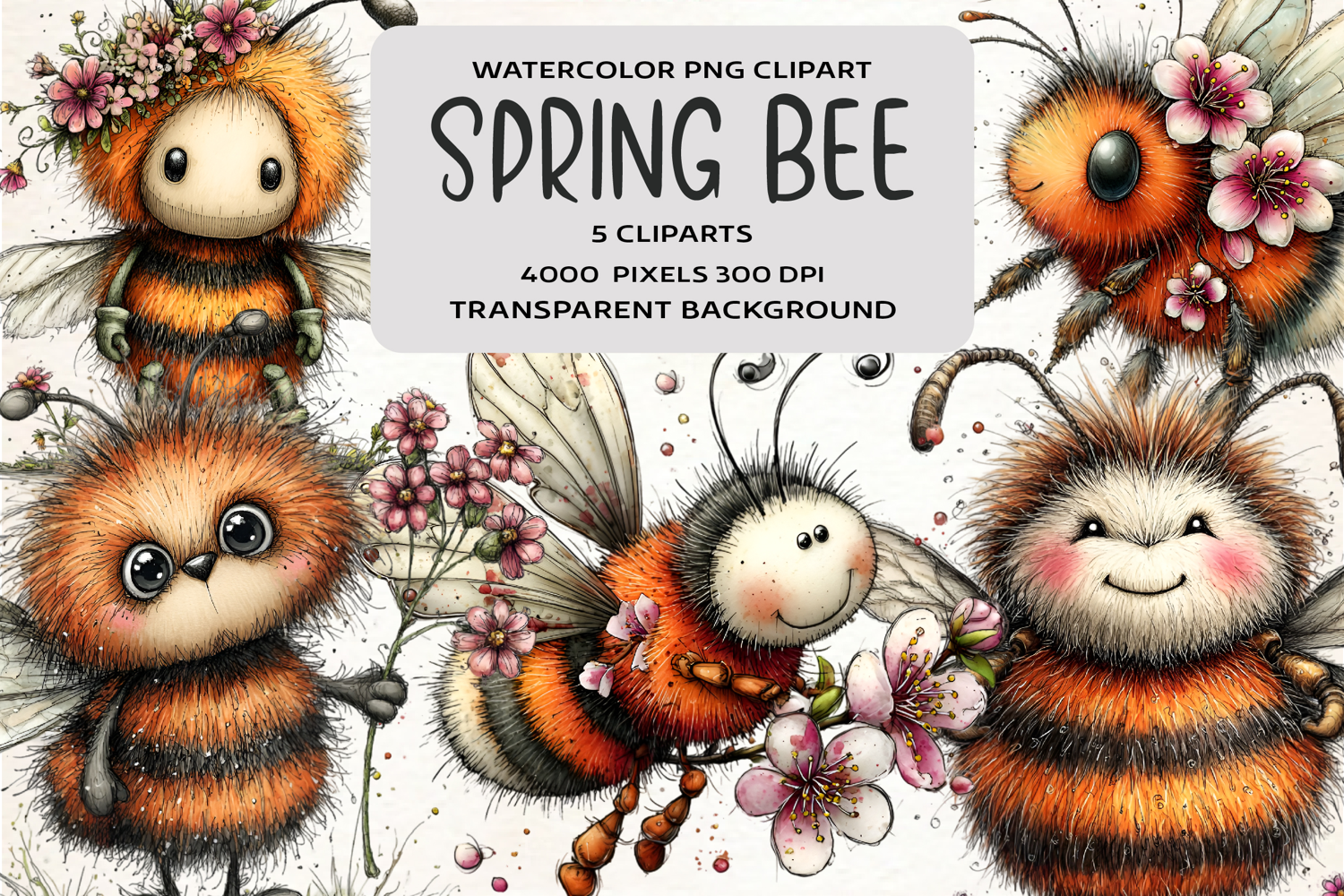 Whimsical Spring Bee Clipart