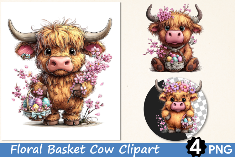 Floral Basket Cow Clipart Sublimation example image 1