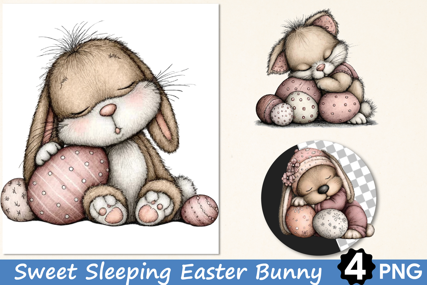 Whimsical Digital Download Sublimation Easter Clipart Easter Sublimation Whimsical Easter Whimsical Spring Whimsical Easter Bunny Clipart Animals Easter Png Sweet Sleeping Easter Bunny Clipart Bundle