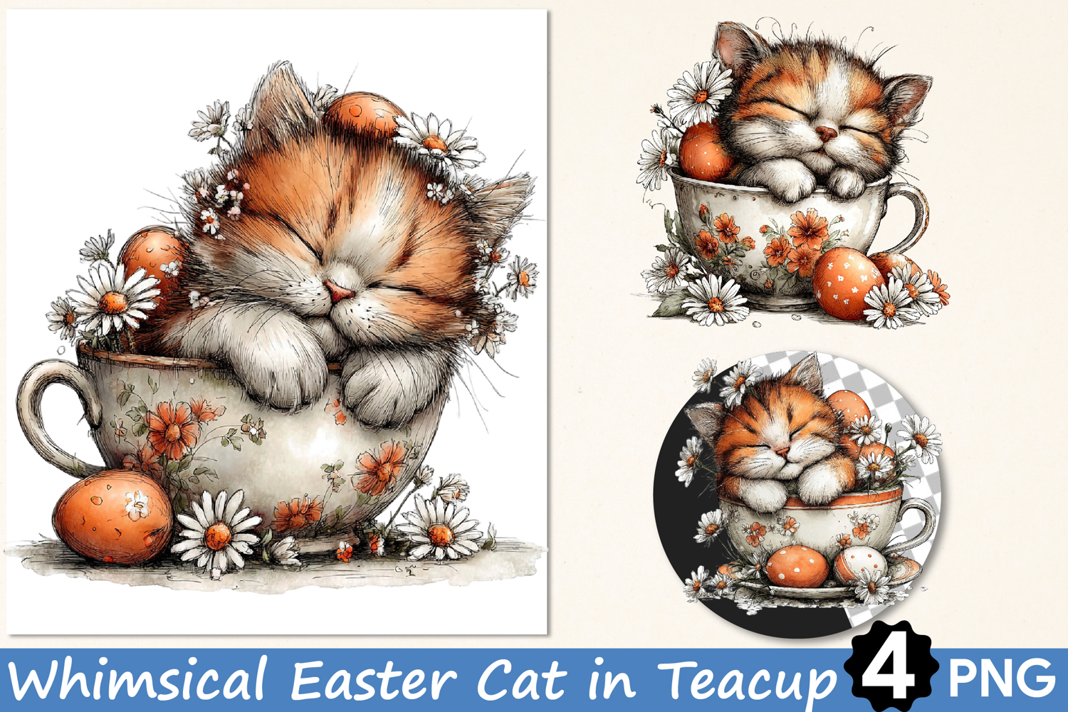 Similar Design Products to Whimsical Easter Cat in Teacup Clipart PNG