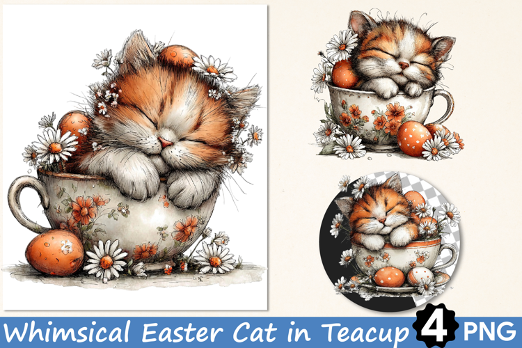 Whimsical Easter Cat in Teacup Clipart PNG example image 1