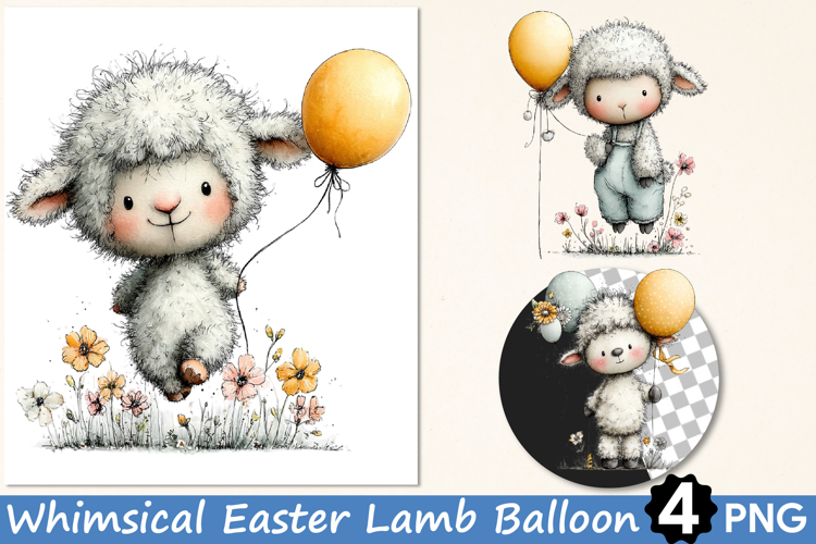 Similar Design Products to Whimsical Easter Lamb Balloon Clipart