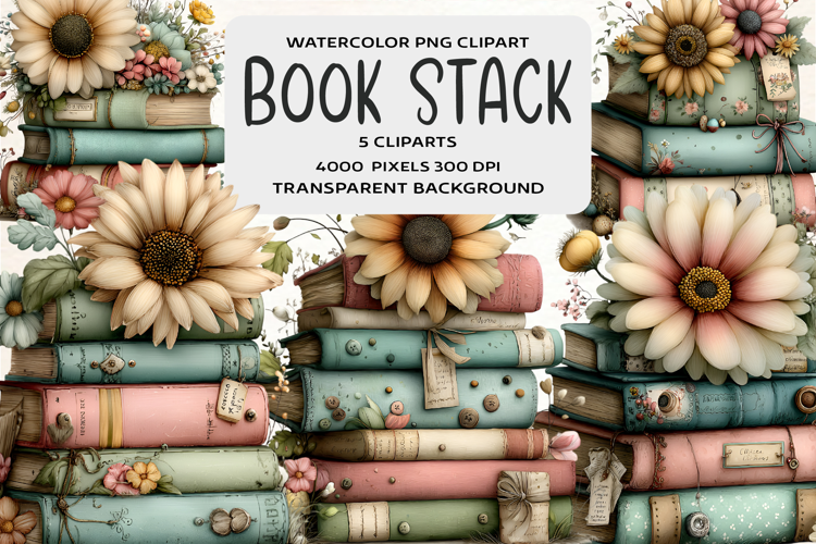 Similar Design Products to Whimsical Book Stack With Sunflower Clipart