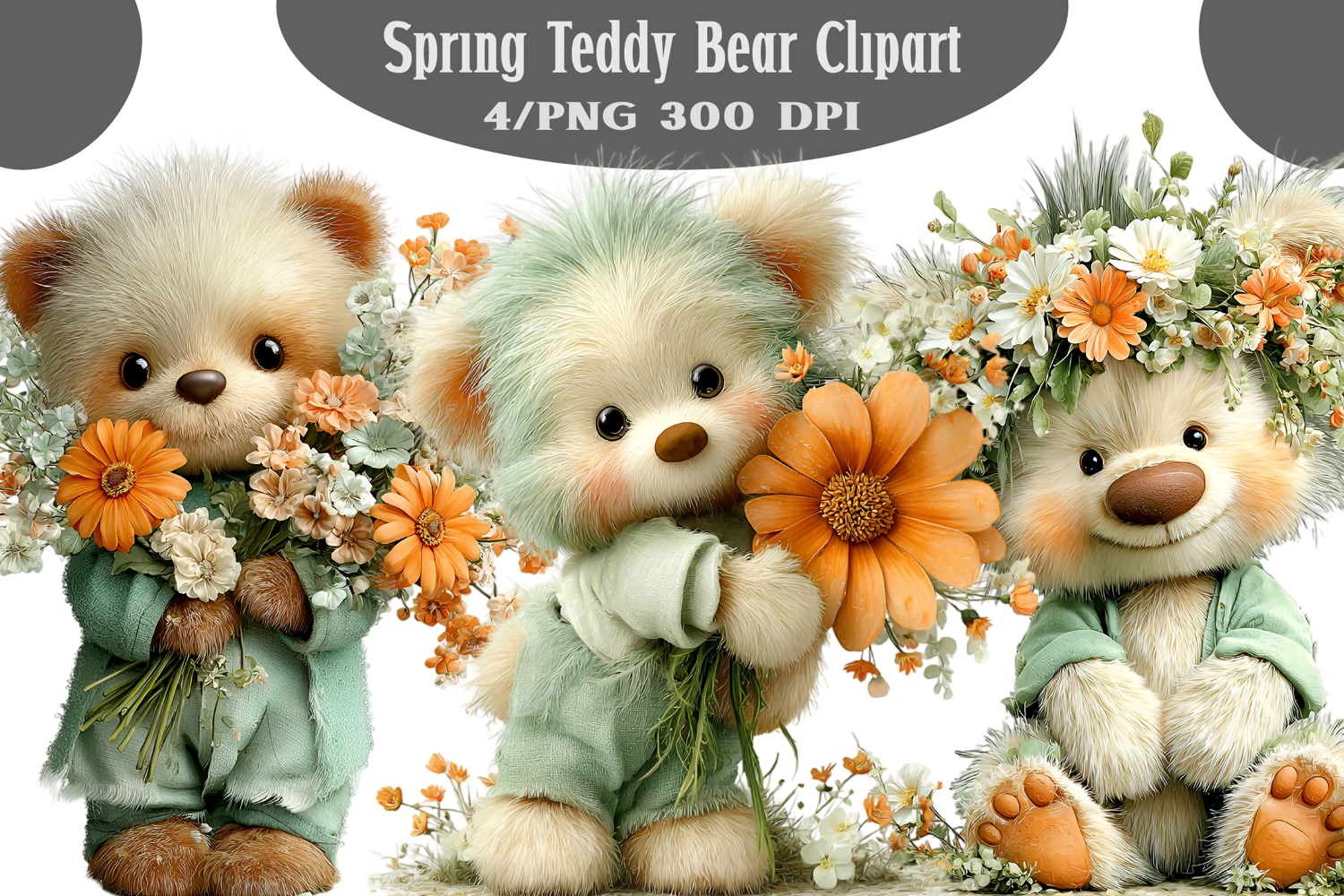 Spring Teddy Bear Clipart example image 1