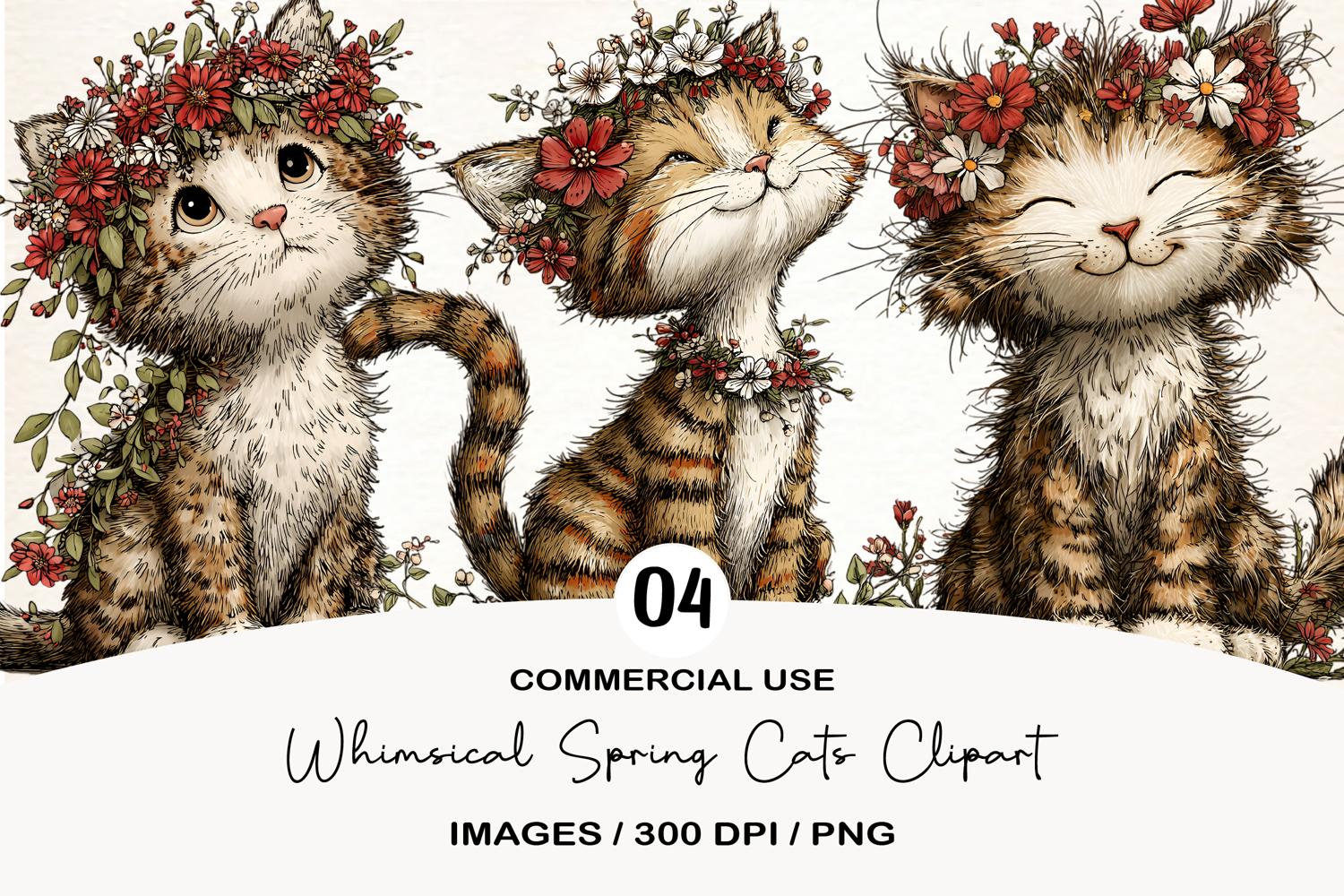 Whimsical Spring Cats Clipart