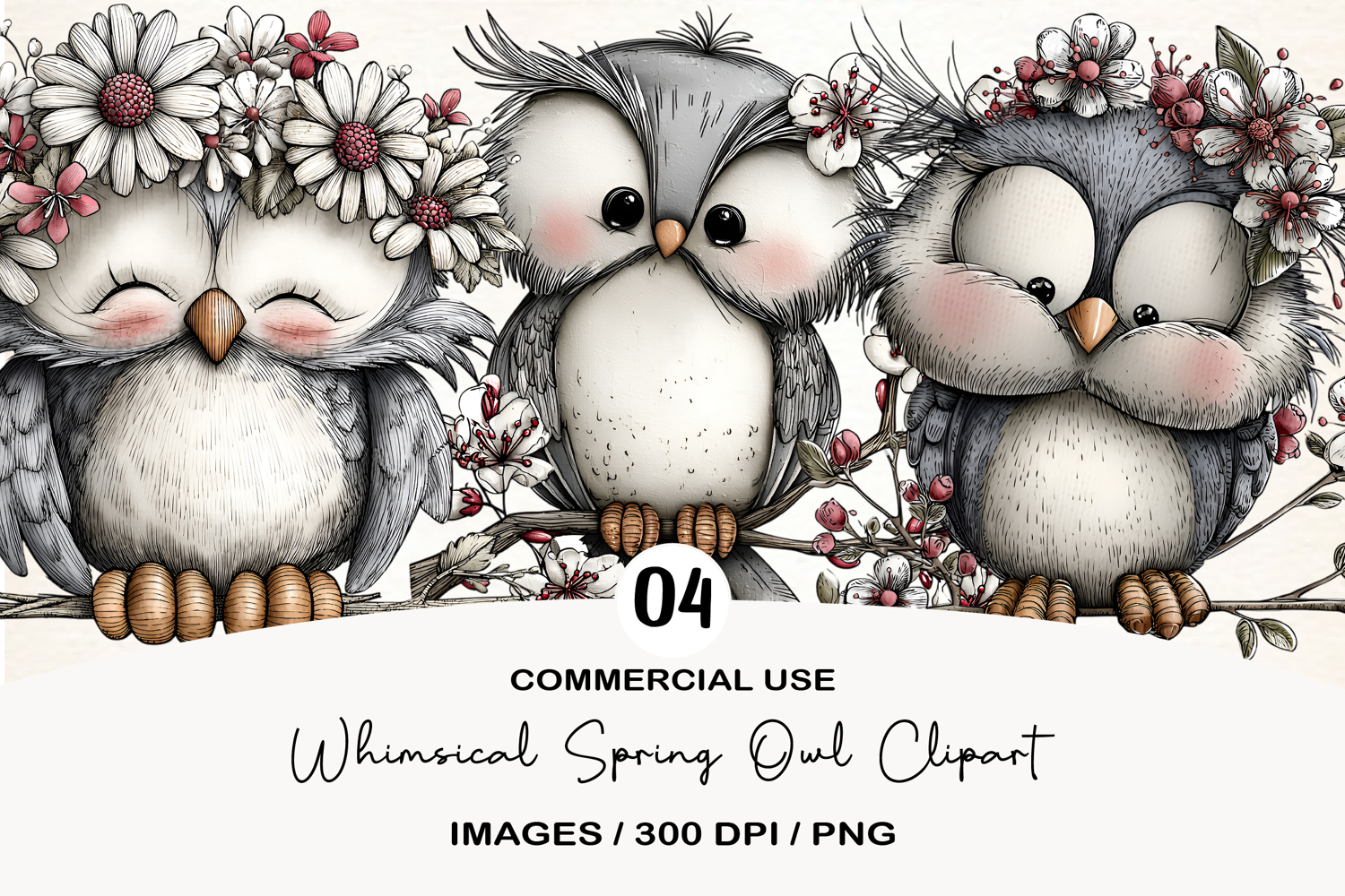 Whimsical Spring Owl Clipart