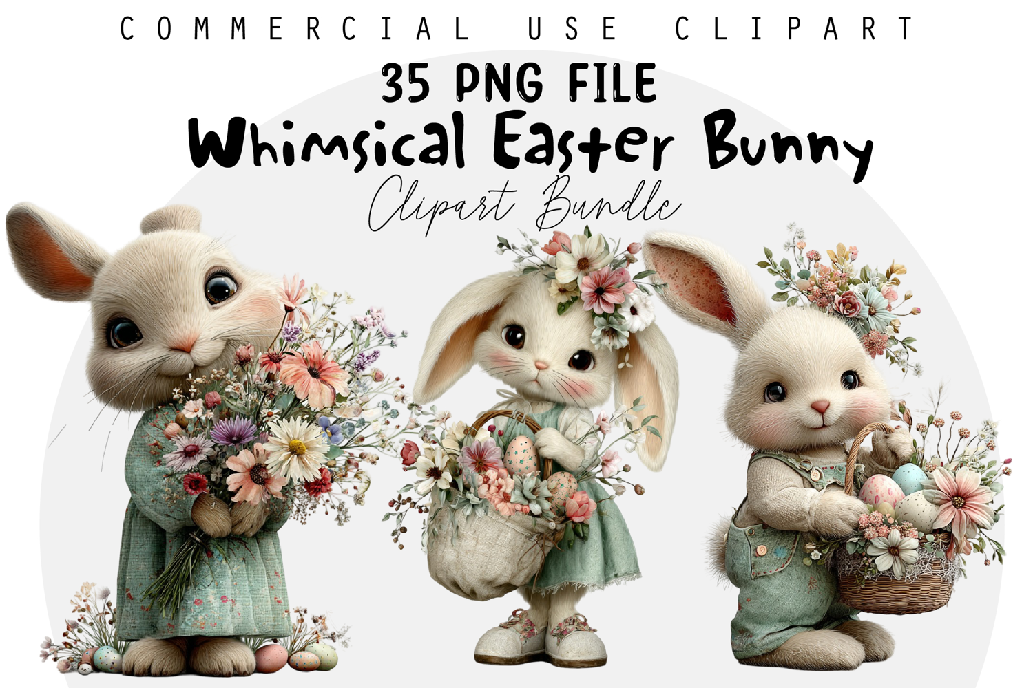 Whimsical Easter Bunny PNG Bundle, Easter Sublimation PNG