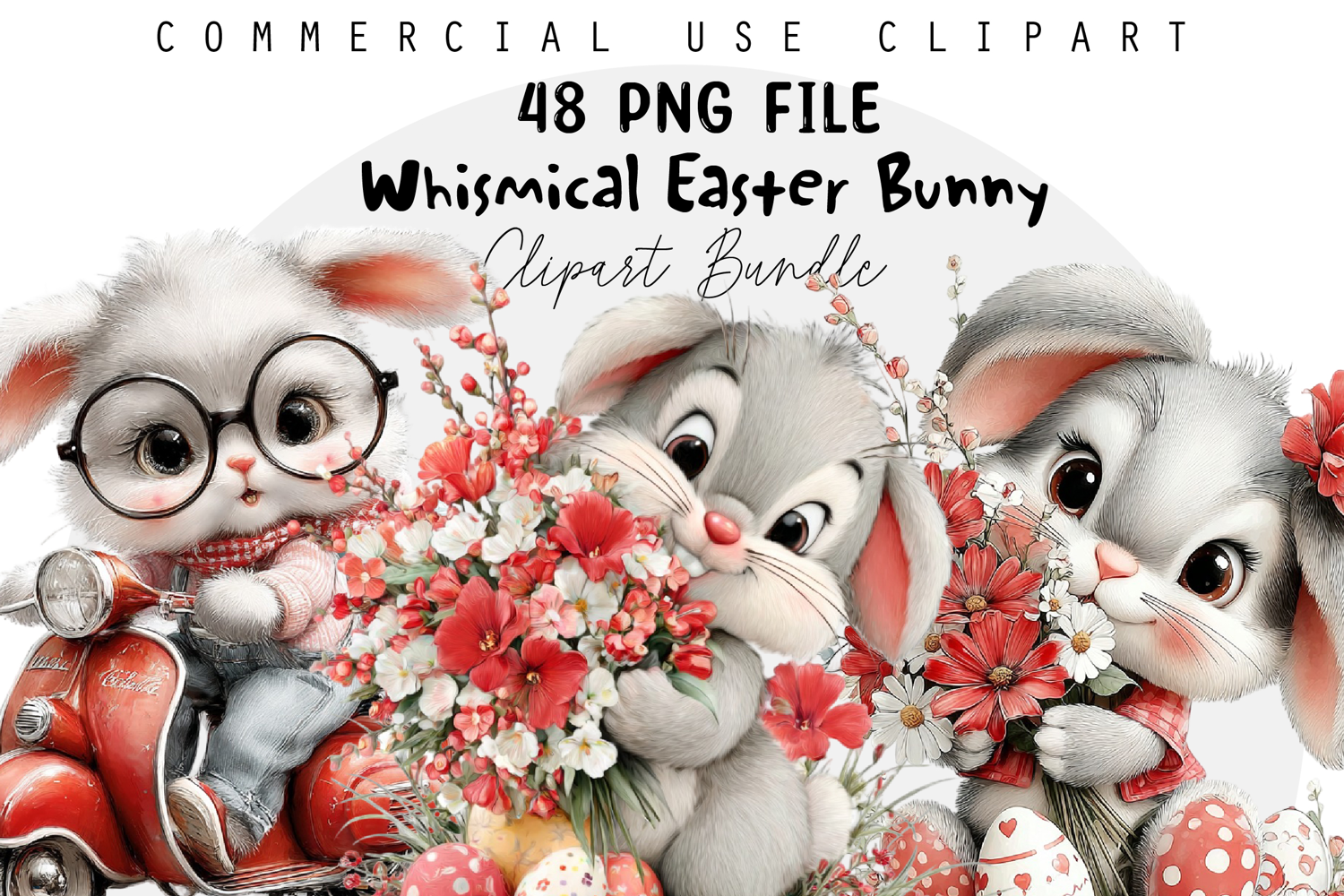 Whimsical Easter Bunny PNG Bundle, Easter Sublimation PNG