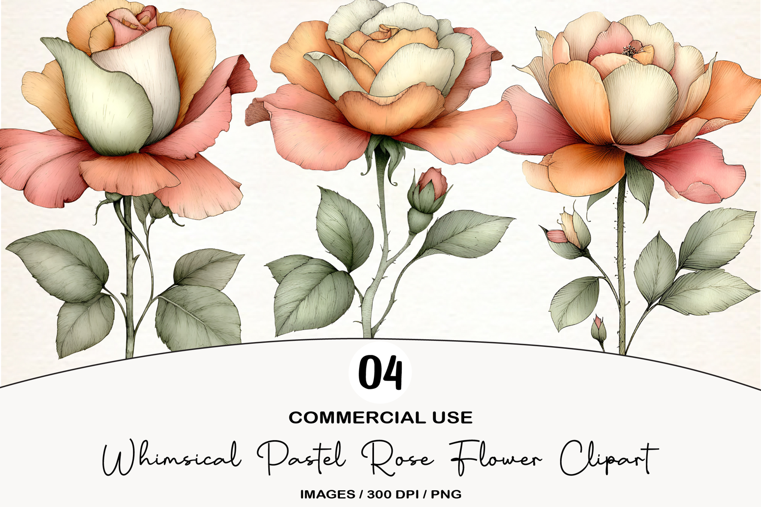 Similar Design Products to Whimsical Pastel Rose Flower Clipart