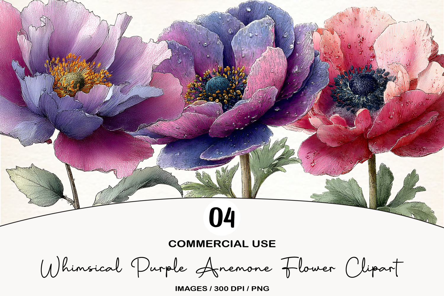 Similar Design Products to Whimsical Purple Anemone Flower Clipart