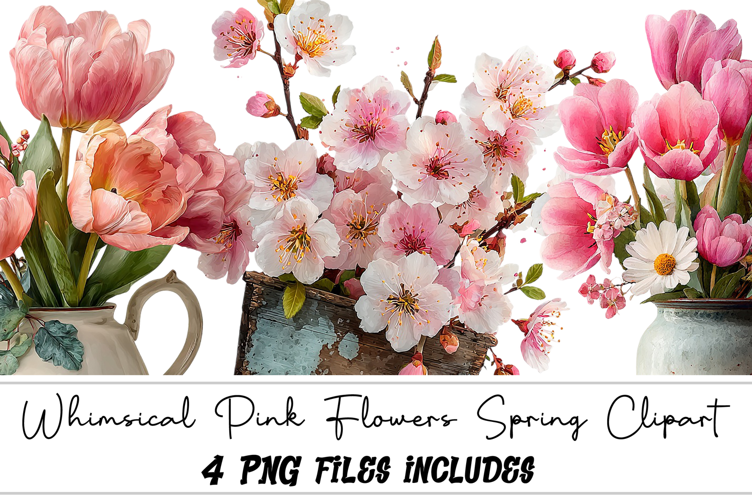 Similar Design Products to Whimsical Pink Flowers Spring Clipart