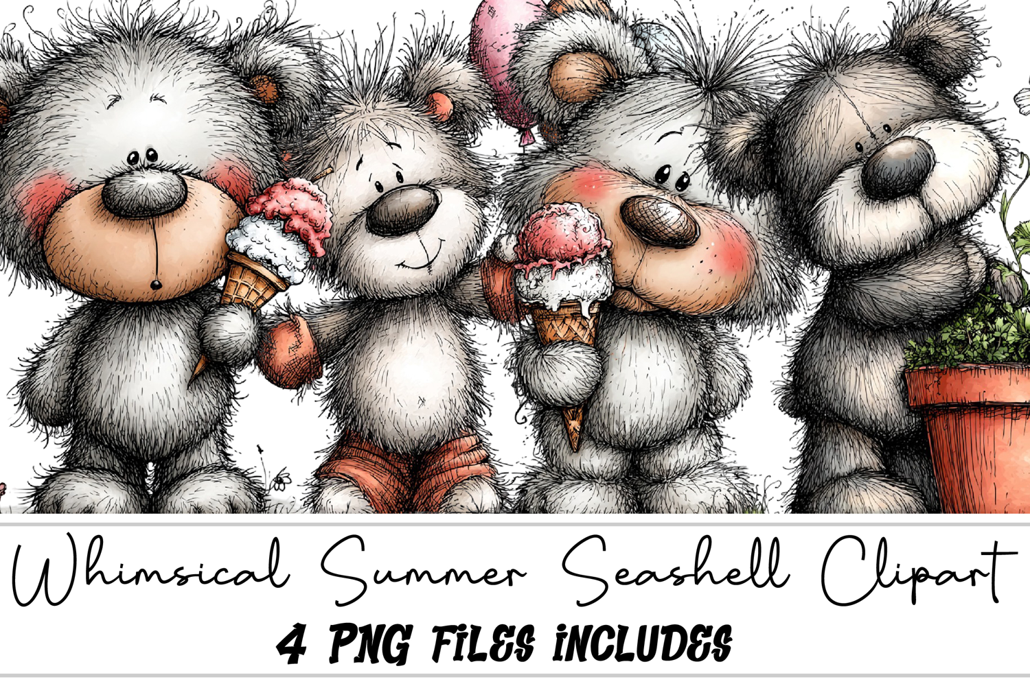 Whimsical Summer Teddy Bear Clipart example image 1
