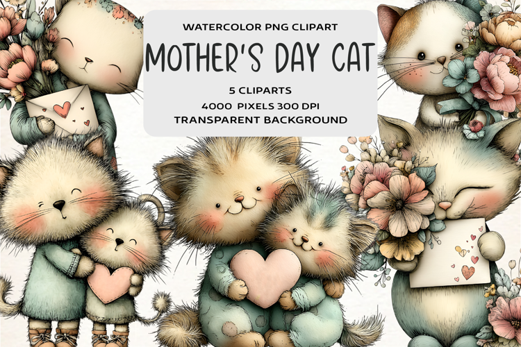 Whimsical Mother's Day Cats Clipart example image 1