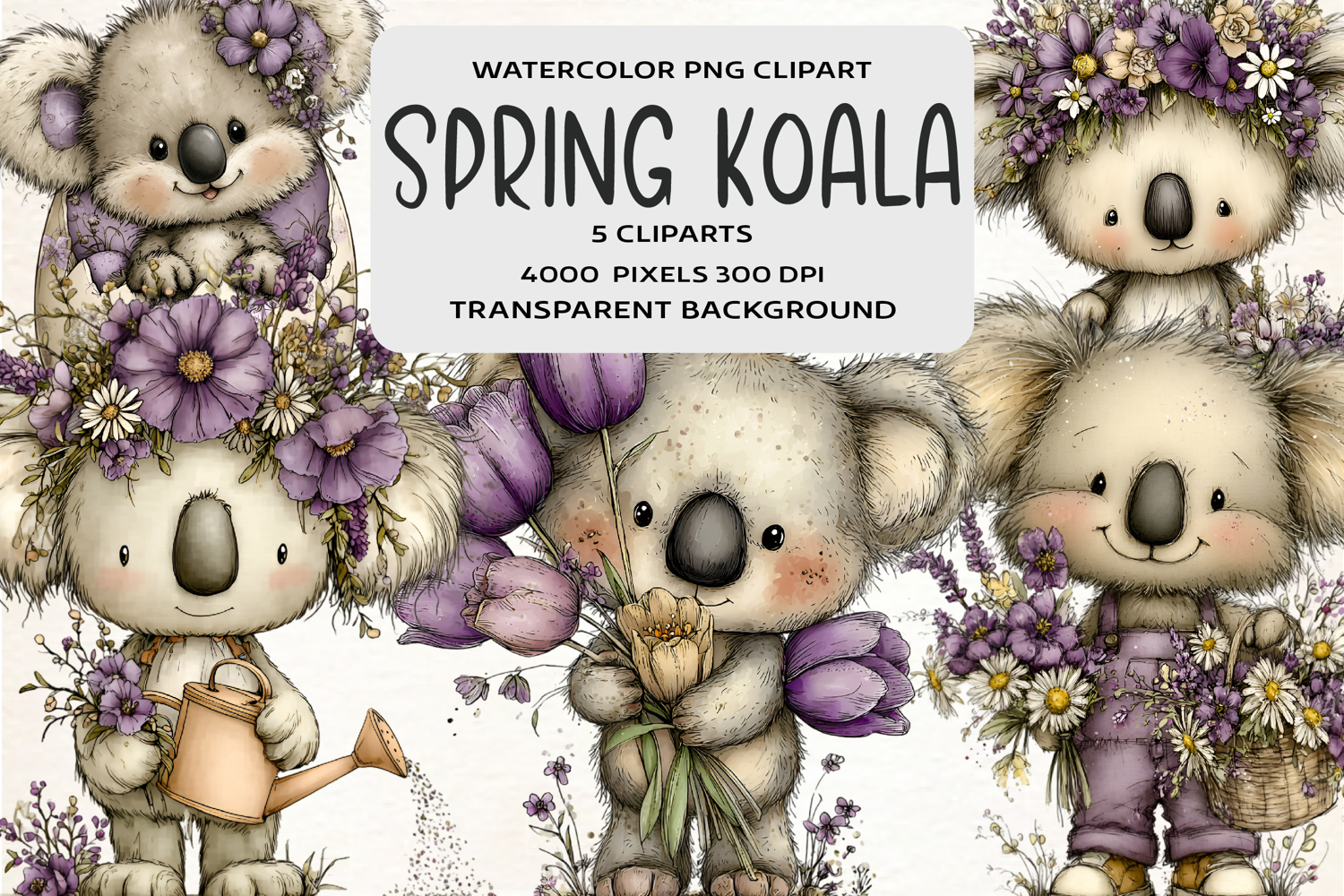 Whimsical Spring Koala Clipart
