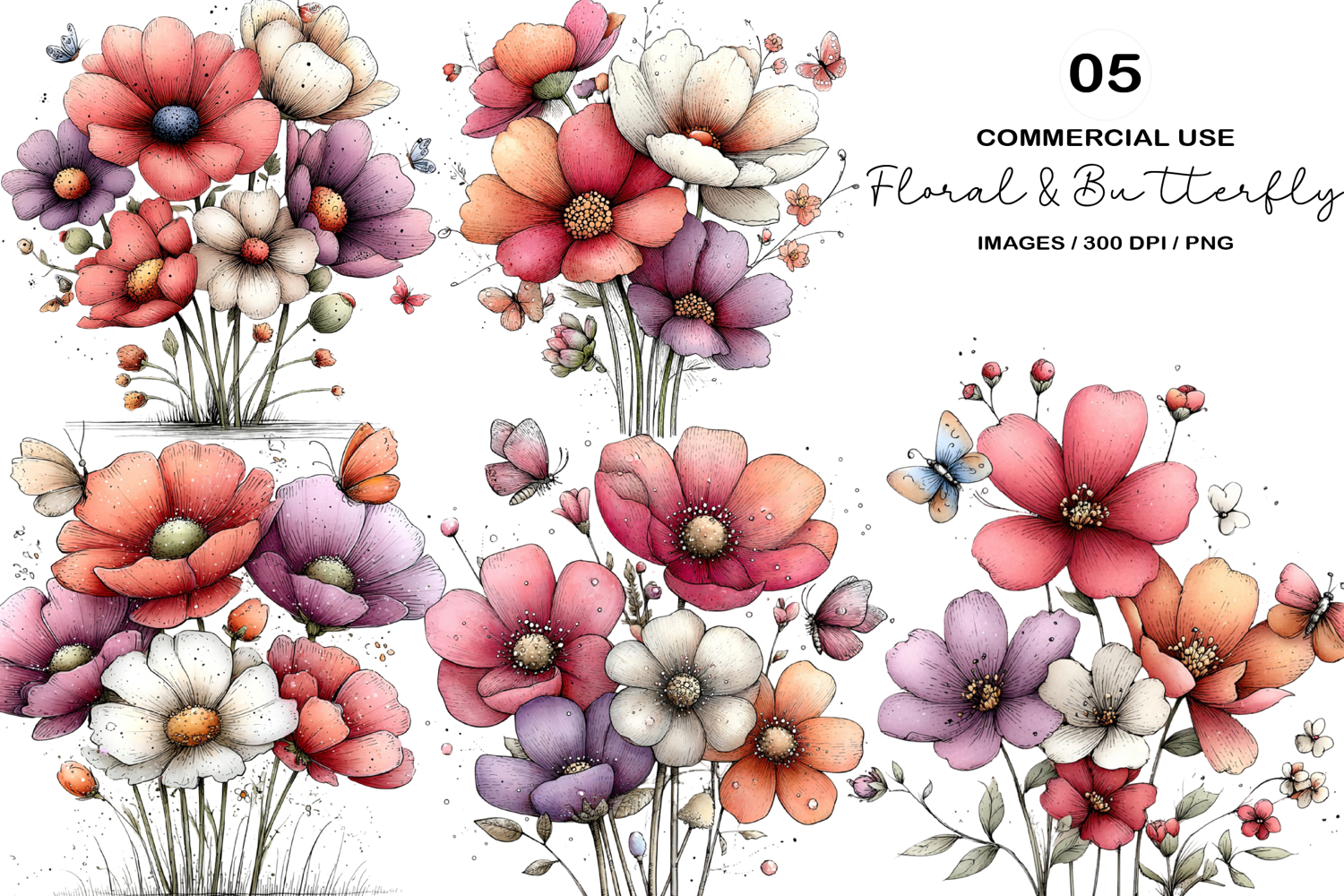 Similar Design Products to Whimsical Floral & Butterfly Clipart