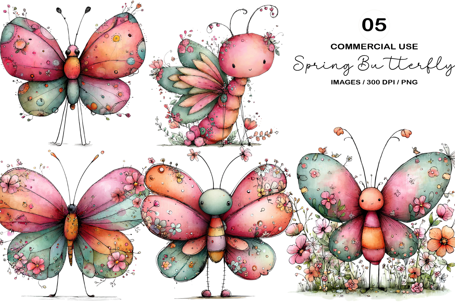 Whimsical Spring Butterfly Clipart example image 1
