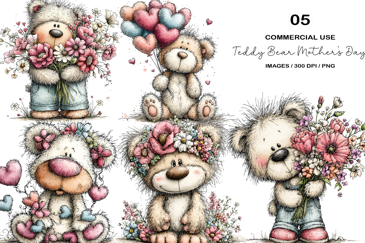 Whimsical Teddy Bear Mother’s Day Clipart example image 1