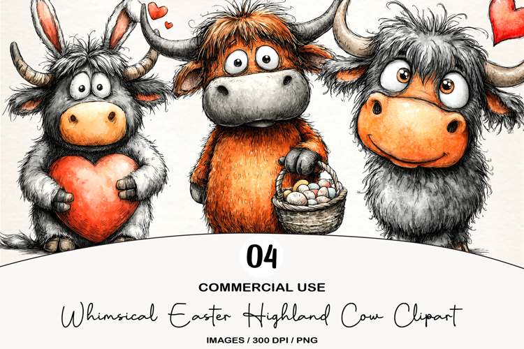 Whimsical Easter Highland Cow Clipart