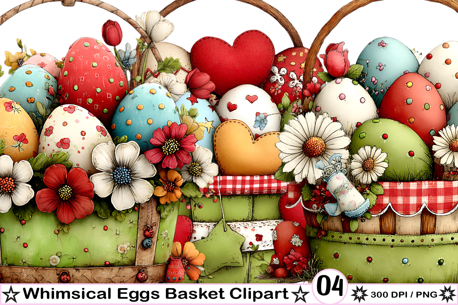 Whimsical Eggs Basket Clipart