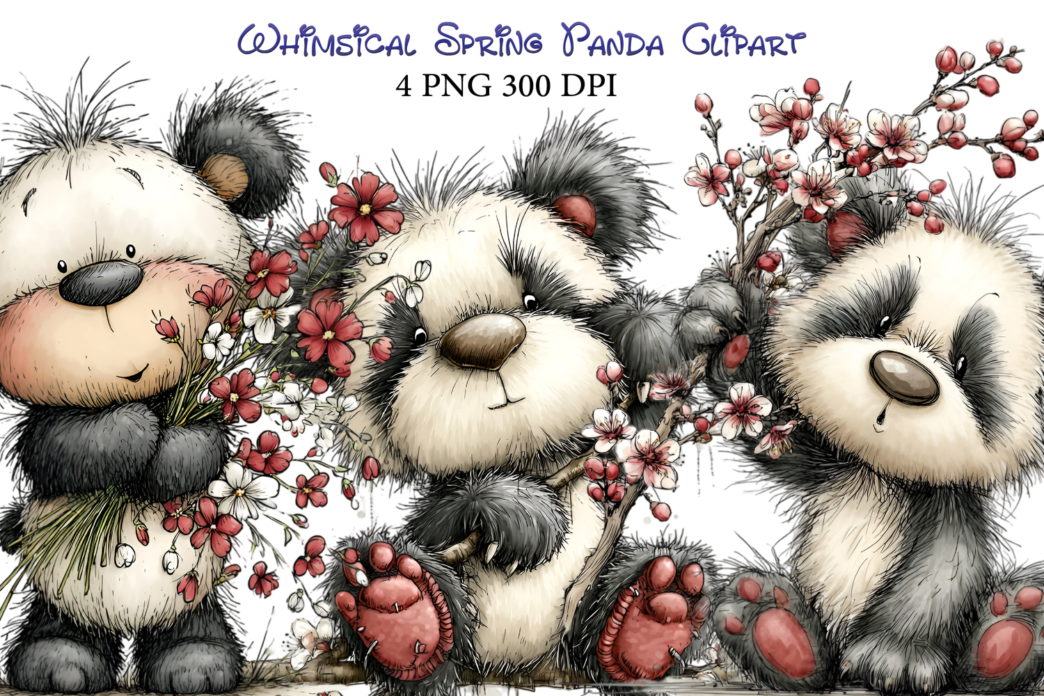 Spring Flower Clipart Sublimation Hand-drawn Clipart Spring Clipart Bunny Clipart Whimsical Clipart Whimsical Easter Whimsical Spring Clipart Whimsical Spring Panda Clipart