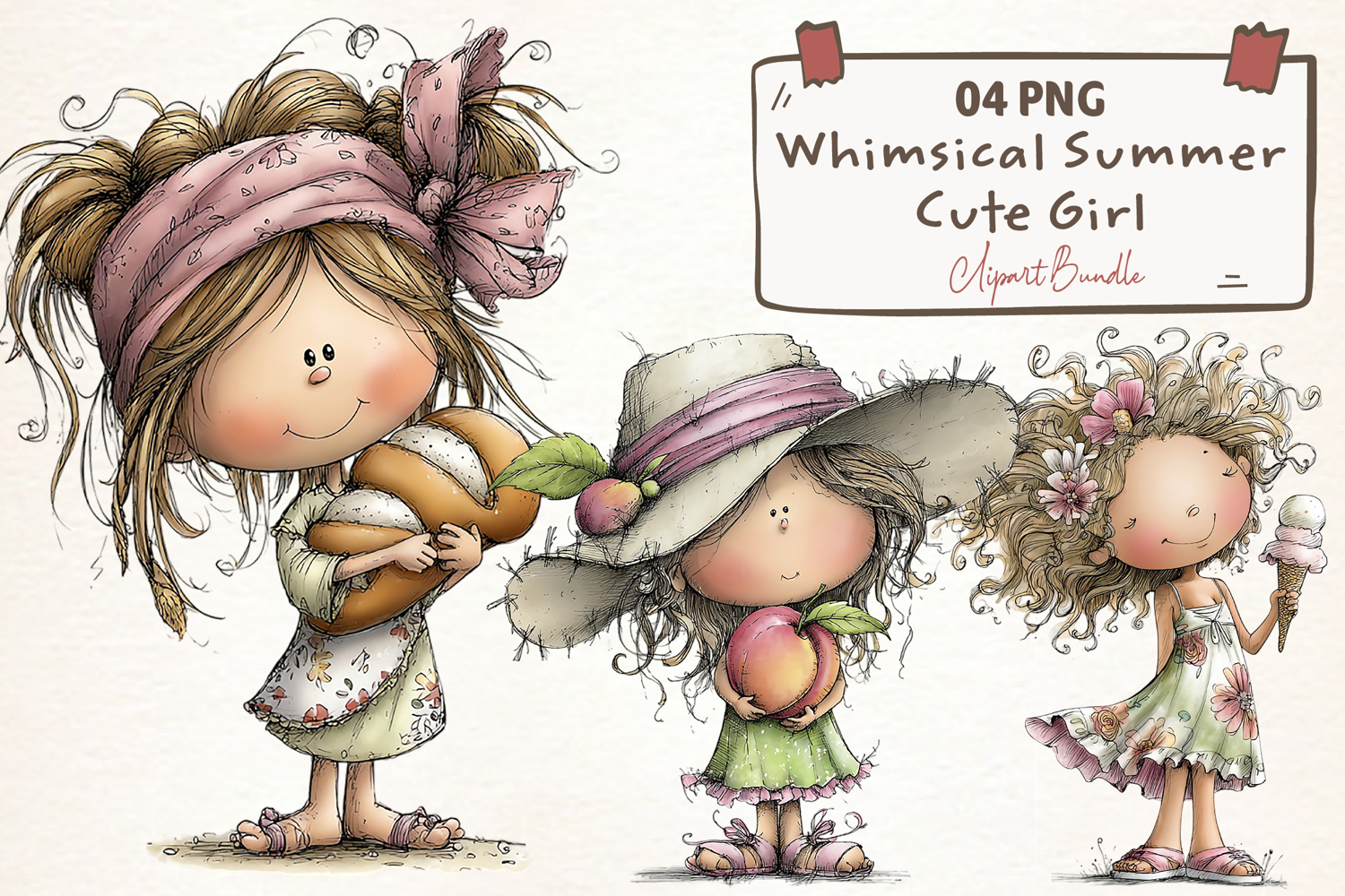 Similar Design Products to Whimsical Summer Cute Girl Clipart